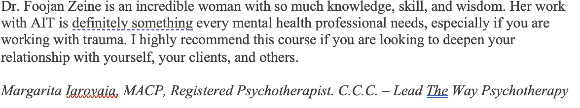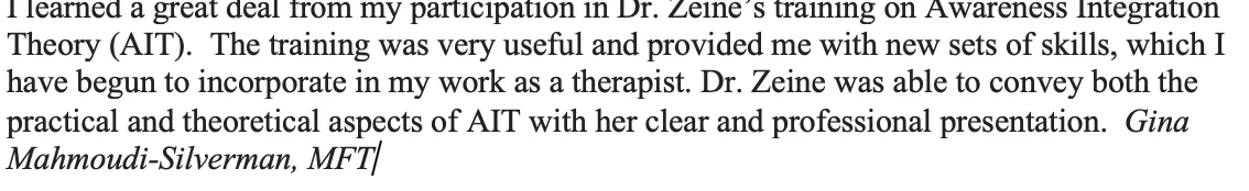 Fundamentals of the Awareness Integration Theory: The exclusive Course from Foojan Zeine that helps Psychotherapists, Mental Health Counselors, and Coaches achieve great success in client growth and satisfaction.